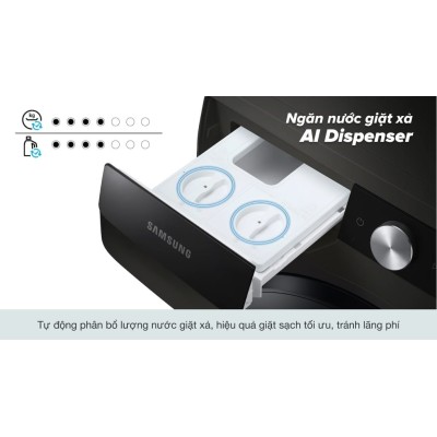 The Samsung AI inverter ww10t634dlx/VE washing machine has a modern front door design, with a luxurious black tone, will be a highlight in the interior of your family.